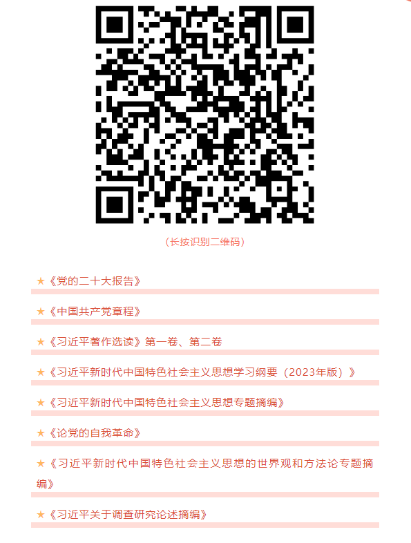 当前,全党上下正在深入开展学习贯彻习近平新时代中国特色社会主义思想主题教育。经党中央批准,主题教育确定了8种学习材料,包括党的二十大报告和党章、《习近平著作选读》、《习近平新时代中国特色社会主义思想专题摘编》等。