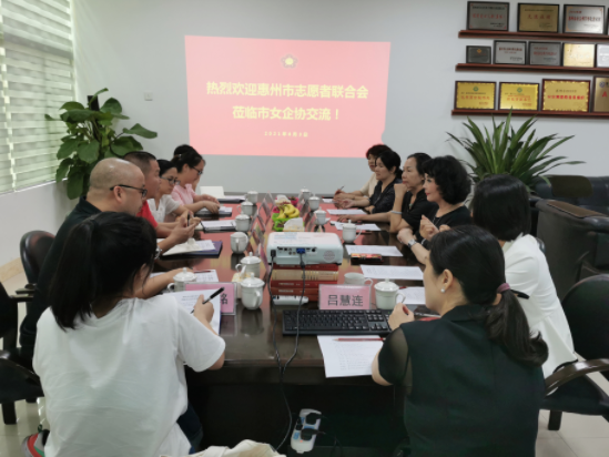 8月3日,惠州市志愿者联合会监事长黄伟强,党支部书记、副会长兼秘书长余国品等一行6人到访市女企协开展交流活动,进一步增进工作交流、相互促进,共同推动协会工作建设发展。交流团受到我会会长张琳,副会长兼秘书长谭小英,副会长雷燕菲、徐小雁、杨小红等热情接待。