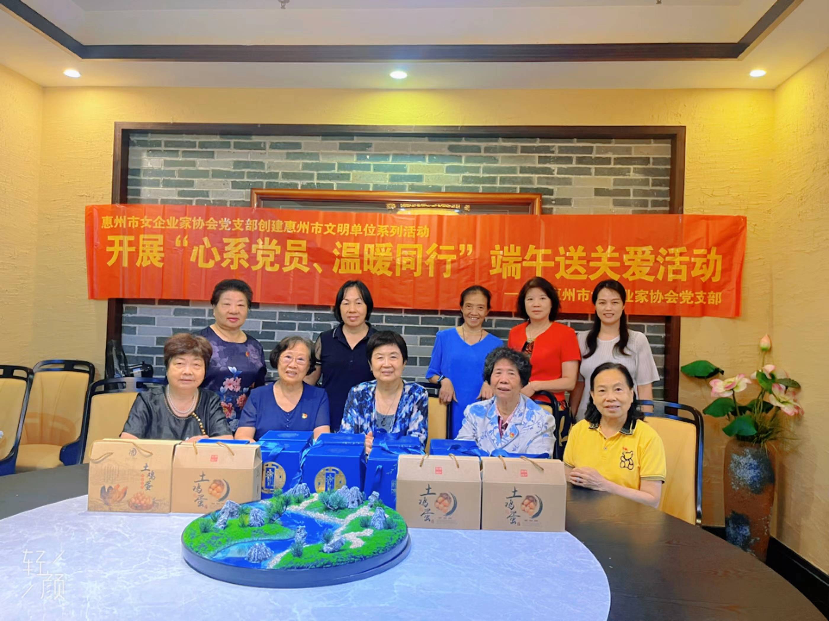 "心系党员 温暖同行",在端午节来临之际,惠州市女企业家协会党支部开展了端午佳节关爱老党员活动。多年来,无论是在原支部的默默付出还是在协会支部的勇于担当、甘于奉献,老党员一直传承光荣传统,为支部、为协会作出了许多贡献。为表达对老党员们的敬意与关爱,协会支部准备了“暖心”粽子礼盒与鸡蛋,支部书记张琳委托支部副书记吕慧连和组织委员谭小英等亲自送到老党员们的手中,并祝福老党员们身体健康、阖家欢乐、端午安康。