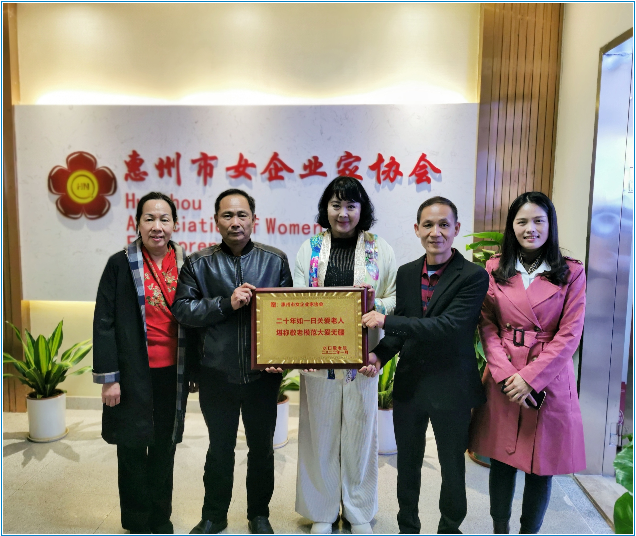 2022年2月17日下午,惠州市水口敬老院的李院长和黎院长专程来到惠州市女企业家协会办公室赠送牌匾,以表达对惠州市女企业家协会二十年如一日慰问敬老院老人的感激之情。张琳会长代表本会接受牌匾。