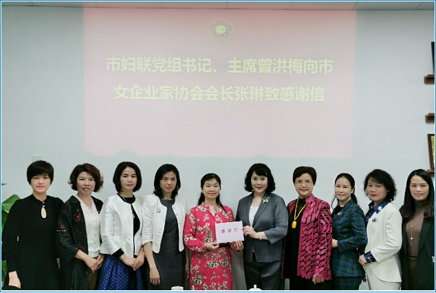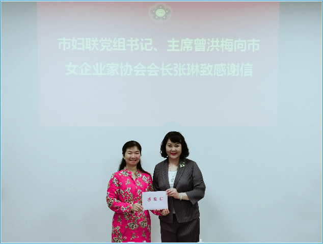 座谈结束后,市妇联主席曾洪梅带着深深的谢意向乡村振兴的帮扶单位惠州市女企业家协会送上了一封感谢信,对惠州市女企业家协会秉承大爱表示感谢。张琳会长代表协会接受了感谢信。