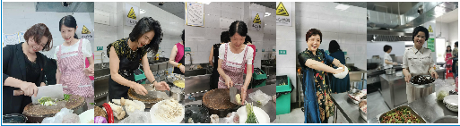 在厨房,大家热情高涨、全神贯注、精心烹饪,一片热火朝天,姜葱炒螃蟹,尖椒土豆丝、乌梅鸡翅、剁椒鱼头、炸莲藕夹、炒牛肉、芋头蒸排骨、卤味拼盘……从材料准备到最后摆盘都精心制作,充分展现出新时代女性不仅能在职场中努力拼搏、实现自我,同样也能心灵手巧、成为家庭里的一把好手。大家都秀出了绝活,秀出了创意,最后一道道香气扑鼻的精美菜品摆上了餐桌。女企业家们欢聚一堂,共品舌尖上的美味。