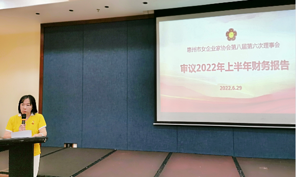 会议审议通过了《惠州市女企业家协会2022年上半年工作报告》、《惠州市女企业家协会2022年上半年财务报告》、《关于增补惠州市女企业家协会第八届理事会副会长人选的决议》(草案)等内容,并对2022年下半年的工作进行研究和部署;会上新任副会长表态发言,并向其颁发新任副会长证书,会议最后听取理事对协会2022年下半年工作