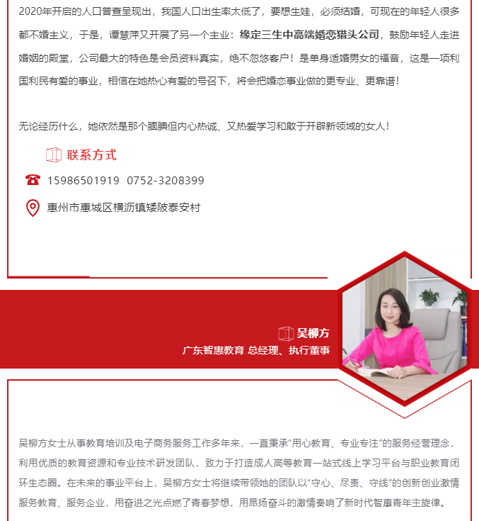 2020年,惠州市女企业家协会吸纳了6名优秀的女企业家成为新会员,为协会注入新活力。下面让我们一起来一睹新会员的风采吧!
