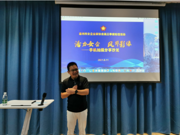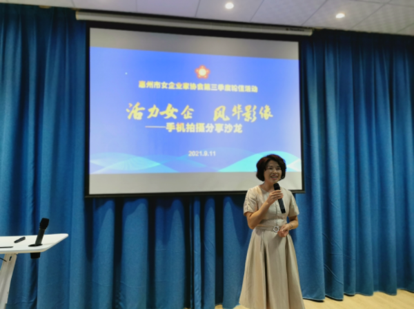 为适应新时代发展要求,提升女企业家手机摄影技巧、审美鉴赏能力和文化艺术素养,建功高质量发展,2021年9月11日下午,惠州市女企业家协会特别邀请惠州市手机摄影协会荣誉会长黄新光(大新老师),在协会多功能厅举办第三季度轮值活动“活力女企 风华影像”手机摄影分享沙龙,协会会长张琳等50余人参加活动。活动由协会第三季度轮值副会长杨小红主持。