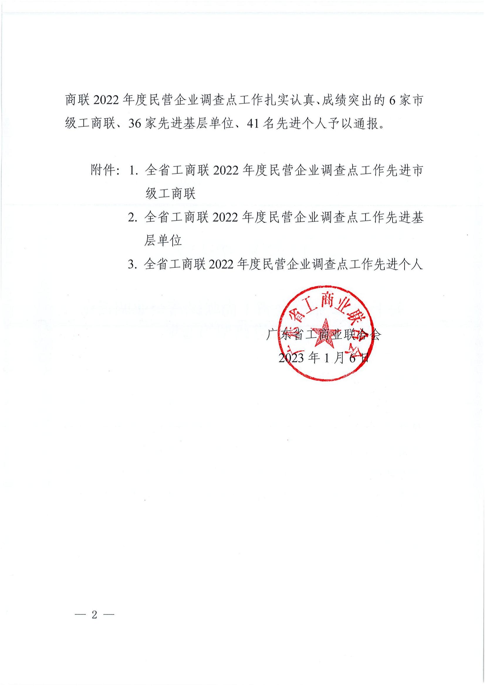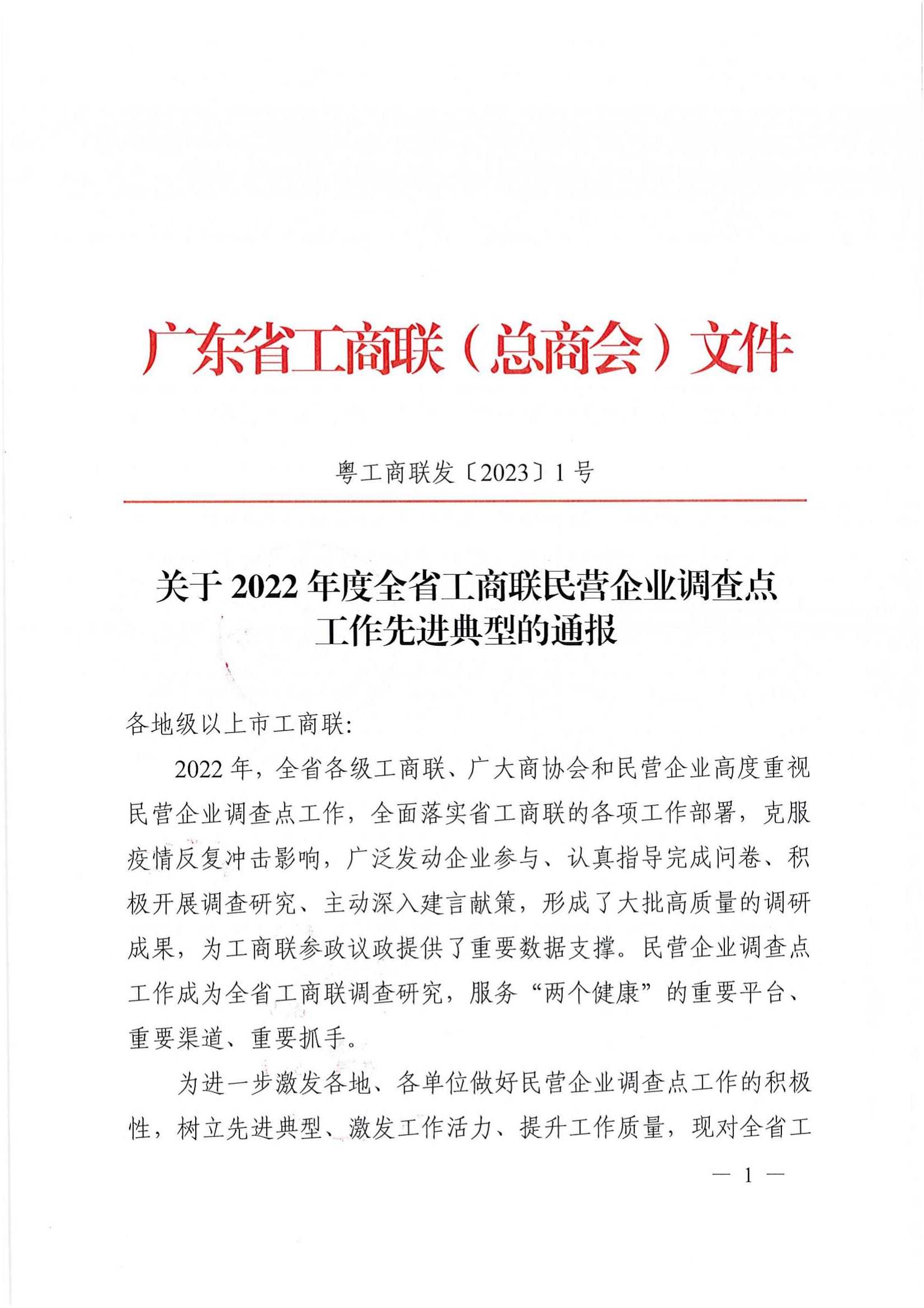 近日,广东省工商联印发《关于2022 年度全省工商联民营企业调查点工作先进典型的通报》,对全省工商联2022 年度民营企业调查点工作扎实认真、成绩突出的市级工商联、先进基层单位及先进个人予以通报。惠州市女企业家协会榜上有名,获评“全省工商联2022年度民营企业调查点工作先进基层单位”。