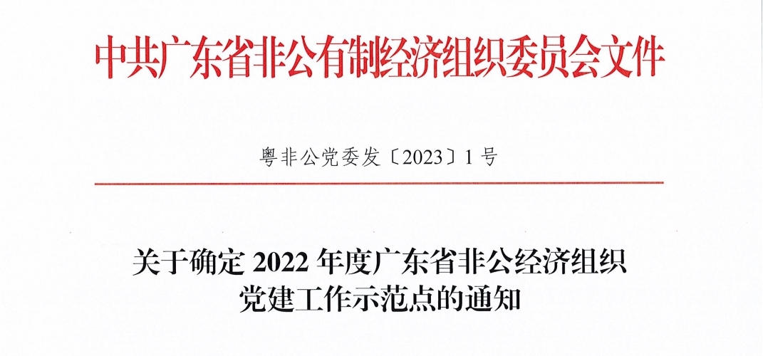 获评“广东省非公经济组织党建工作示范点”荣誉