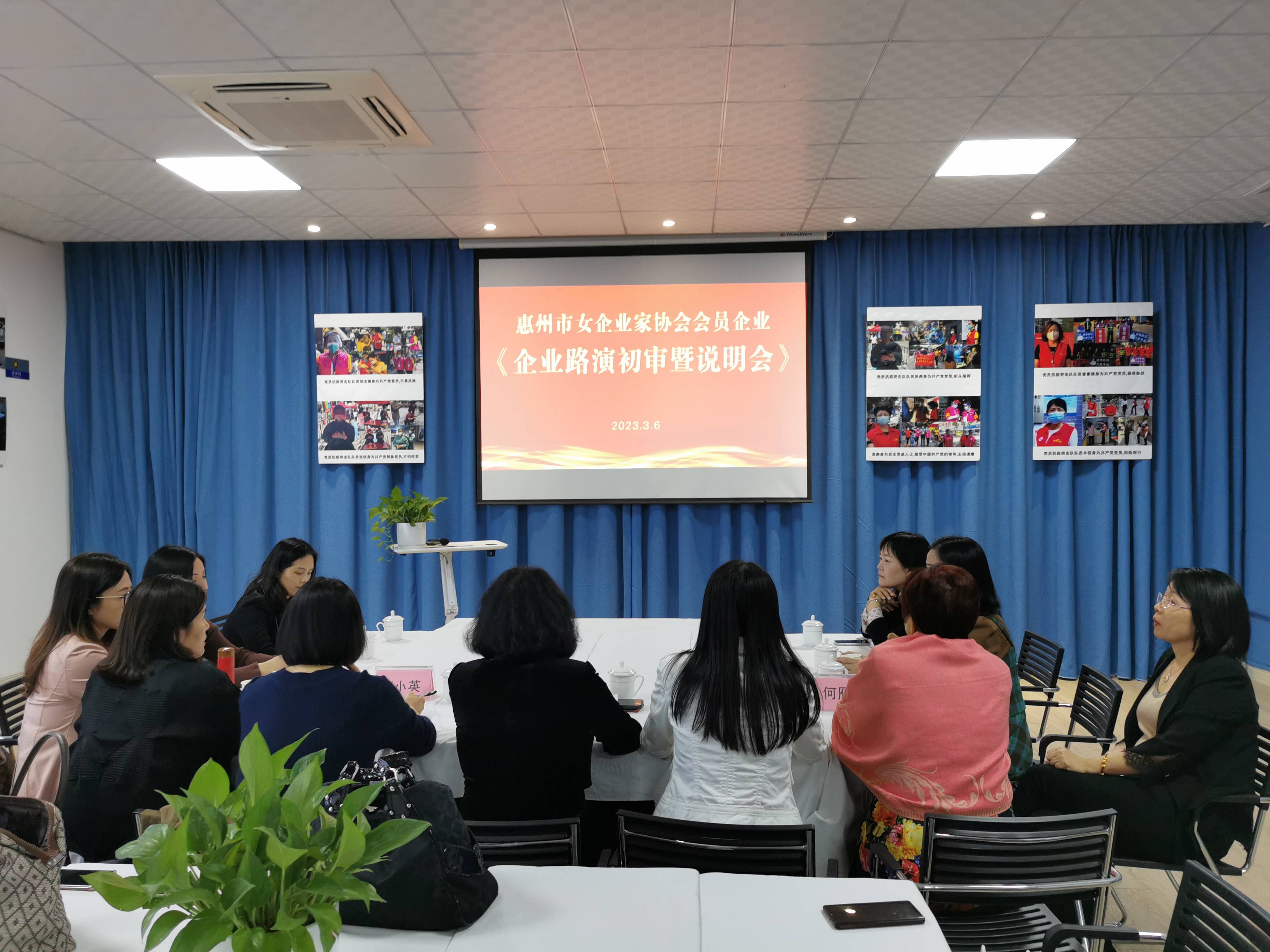 惠州市女企业家协会企业路演初审暨说明会第一轮结束后,于3月6日在协会多功能厅进行了第二轮初审,近10位女企业家热情参与评选。