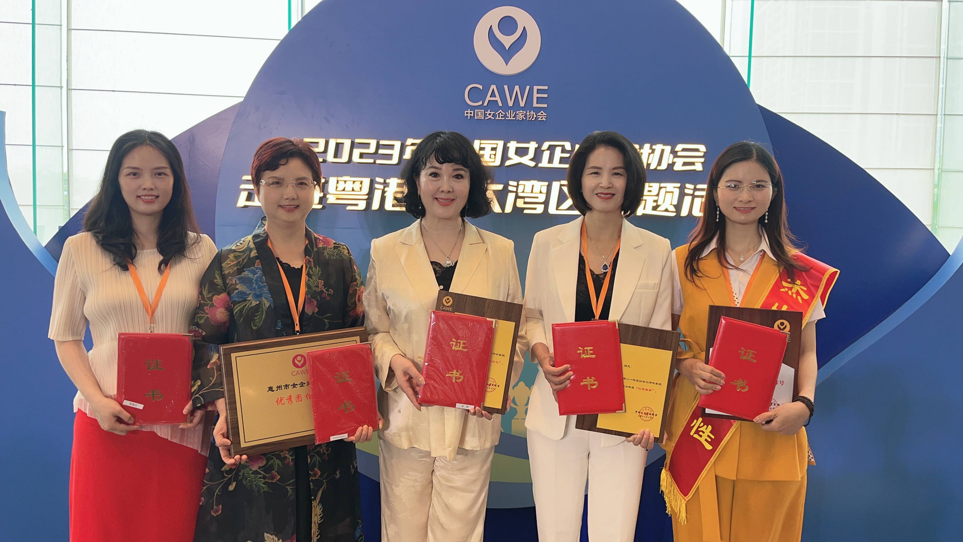 在杰出创业女性及“双优”表彰颁奖大会上,惠州市女企业家协会荣获“优秀团体会员”,会长张琳荣获“优秀副会长”,副会长李慧文荣获“杰出创业女性”,副会长雷燕菲荣获“优秀理事”,副秘书长吕慧连荣获“优秀工作者”。