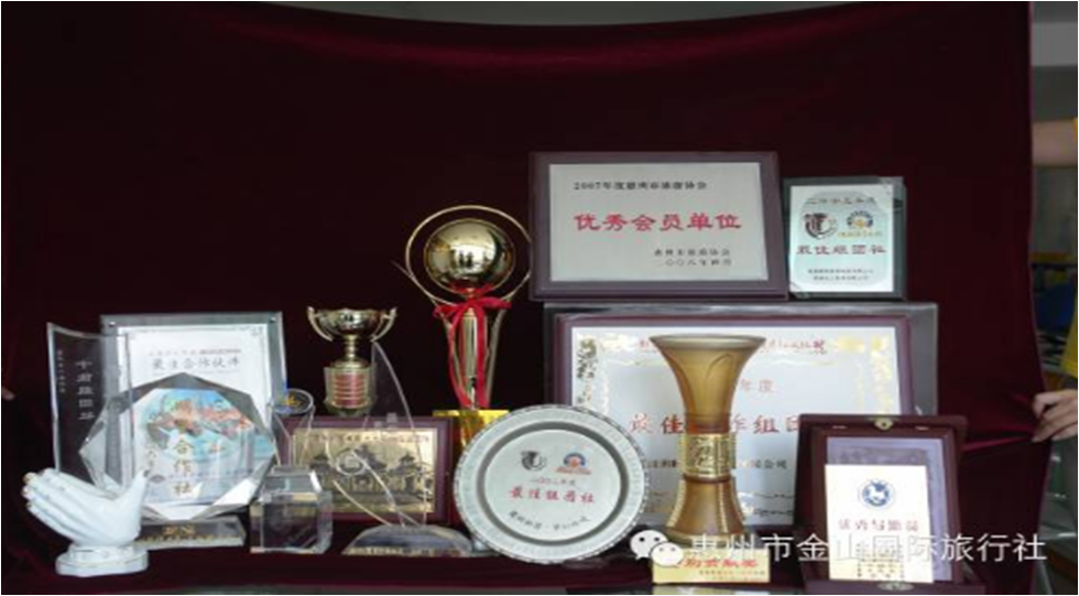 •荣获“惠州市金牌旅行社”、“读者最信赖旅行社”